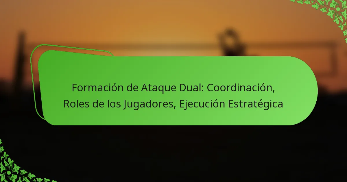 Una formación de ataque dual es una disposición estratégica en los deportes diseñada para lanzar jugadas ofensivas simultáneas desde dos ángulos diferentes, maximizando las oportunidades de anotación. Esta formación se basa en movimientos coordinados y roles de jugador claramente definidos, lo que permite a los equipos maniobrar eficazmente a sus oponentes. La ejecución exitosa depende de una comunicación sólida, conciencia espacial y un tiempo preciso, permitiendo a los jugadores explotar las debilidades defensivas mientras mantienen la cohesión del equipo.